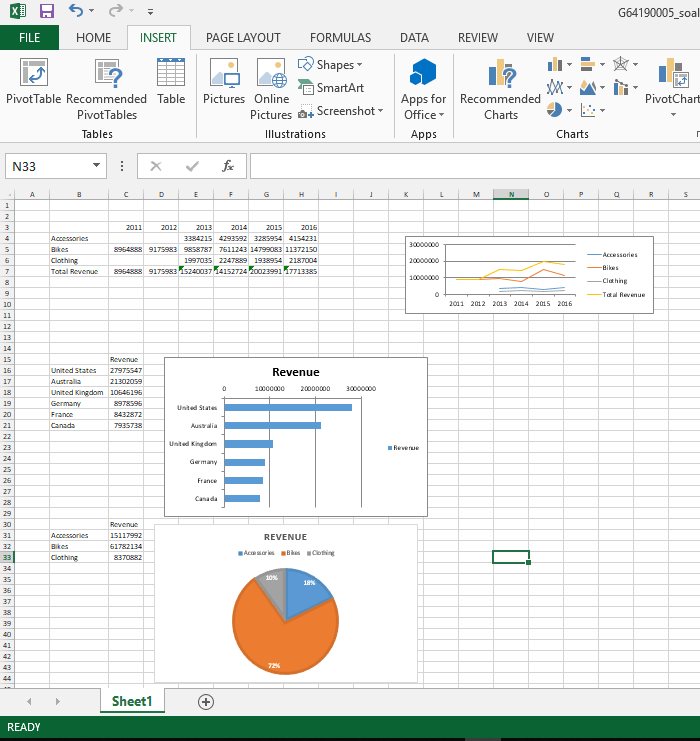 Sekarang mari kita berlatih membuat Chart. Silahkan download file berikut ini untuk sebagai data yang akan kita batkan chartnya. https://github.com/MicrosoftLearning/Introduction-to-Data-Analysis-using-Excel/raw/master/Module1/Lab1Start%20v5.xlsx